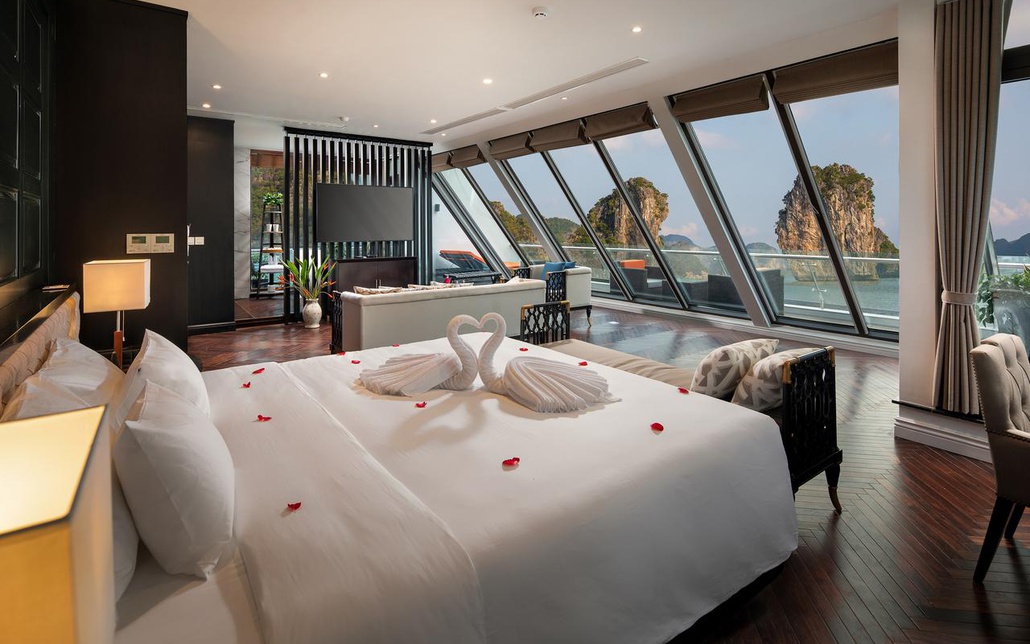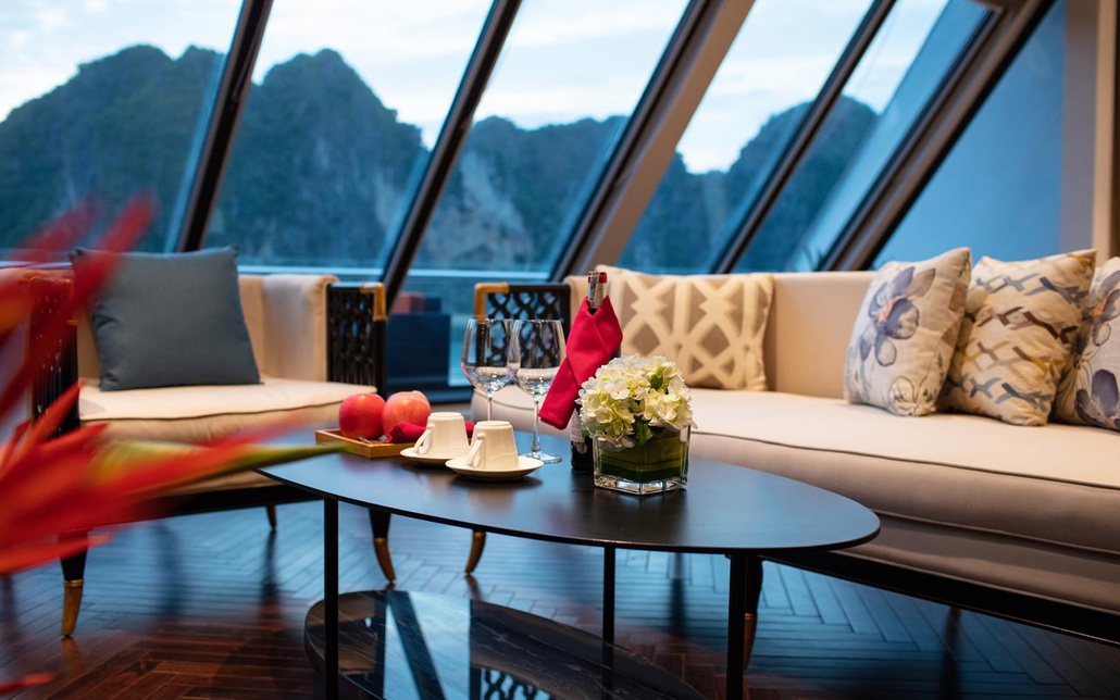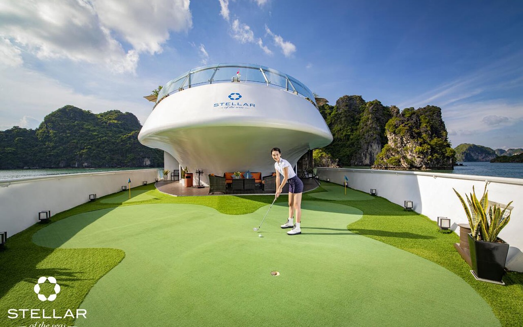 - Tận hưởng những dịch vụ giải trí trên tàu như đắm mình trong bể bơi rộng 50m2 trong khi thưởng ngoạn cảnh vịnh, thư giãn tại spa, tập gym, và chơi golf.