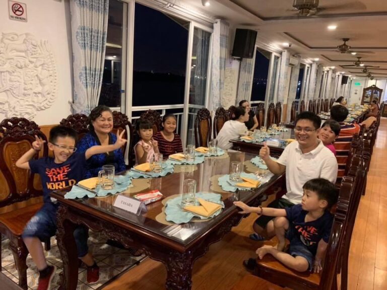 - 18h00 tàu cập bến đón khách, 19h30 tàu xuất bến chạy du ngoạn, 21h00 tàu cập bến.