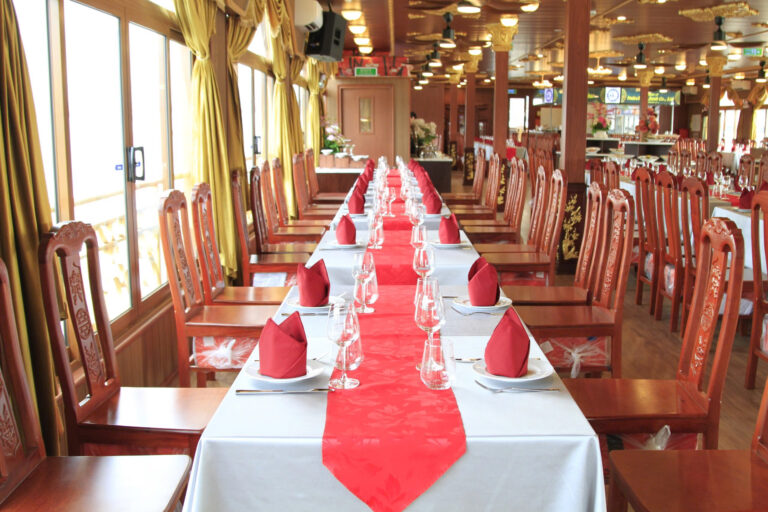 Mức giá áp dụng dự kiến cho hình thức phục vụ set menu: 600.000đ/khách đến 1.450.000đ/khách. Giá đã bao gồm: Vé lên Du Thuyền Indochina Star + 01 bữa ăn tối theo set menu + Thuế VAT 8% + thưởng thức âm nhạc Dân Tộc mang đậm bản sắc Việt + Du Thuyền chạy du ngoạn. Giá áp không áp dụng cho nhóm dưới 04 khách và vào Dịp Lễ, Tết.