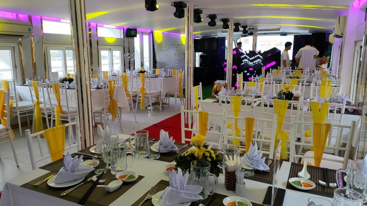 Du Thuyền King Yacht. Dòng Du Thuyền: Nhà Hàng Du Thuyền. Hình thức khai thác: Phù hợp tổ chức tiệc sinh nhật, Tiệc cưới, tiệc họp mặt, tiếp đối tác, Lễ cầu hôn, tour du thuyền ngắm hoàng hôn, tour du lịch đường sông,… Gọi ngay hotline: 0868274689Tiện ích